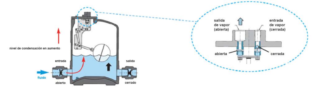 La forma más rápida de saberlo es ir directamente al visor de nivel el cual debe indicar los niveles del condensado durante su llenado. Su comportamiento debe ir en aumento de nivel al estar en proceso de llenado y descenso de nivel al estar drenando de forma hidráulica con vapor.