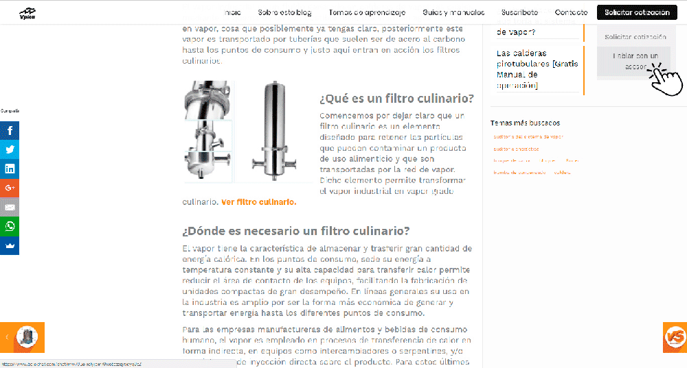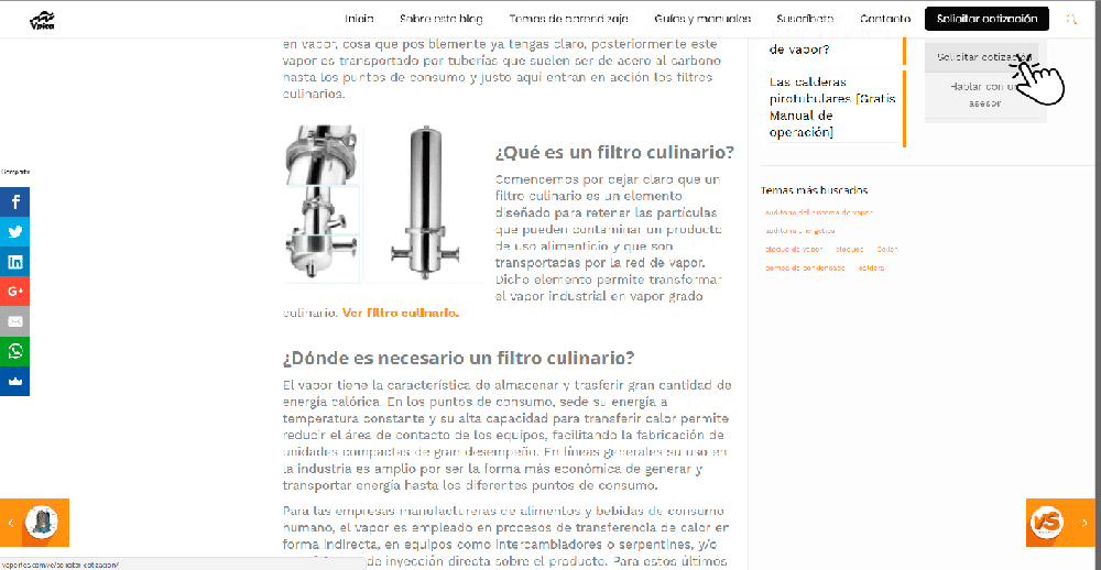 Vpica es el centro de aprendizaje de Vaportec, es decir, no es una tienda, pero si no quieres tener que ir a Google y tener que hacer otra búsqueda no hay problema, ya hicimos esto por ti, en el mismo botón del que ya hablamos, está vez en la primera opción, puedes solicitar tu cotización. Mira la imagen.