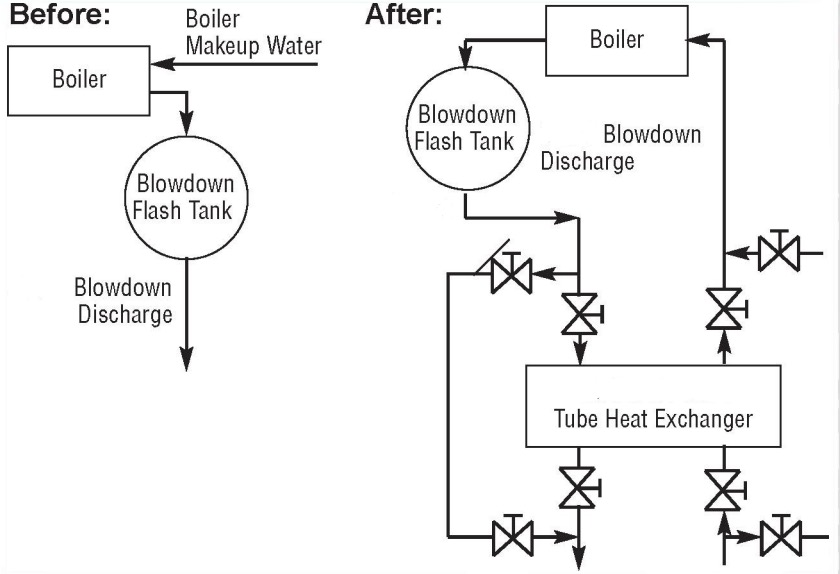 Esto se puede conseguir mediante la implementación de un sistema de recuperación de purga de superficie, el cual consiste en un intercambio de calor de forma indirecta (por contacto y no por inyección) a la descarga del tanque flash entre el agua de purga y el agua de alimentación a caldera.