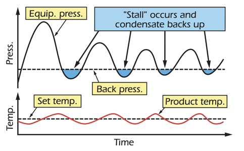 Si bien los sistemas de vapor están diseñados para descargar el condensado a través de este diferencial de presión, varios factores pueden interferir con este mecanismo. Por ejemplo, el uso de una válvula de control de temperatura de entrada puede provocar una inversión en la presión diferencial de funcionamiento de la trampa y provocar una parada.